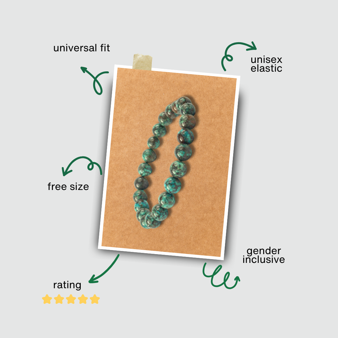 Chrysocolla is known as a natural pacifier, offering calm and tranquility to the wearer. This beautiful stone works to soothe the mind, emotions, body, and senses, making it an essential tool for maintaining composure in stressful situations. Often used by healers to calm agitated patients, Chrysocolla helps bring emotional balance, offering serenity and maturity in handling life's challenges. Wearing this bracelet encourages patience, acceptance, and mental clarity, making it ideal for anyone seeking peace and a positive transformation.