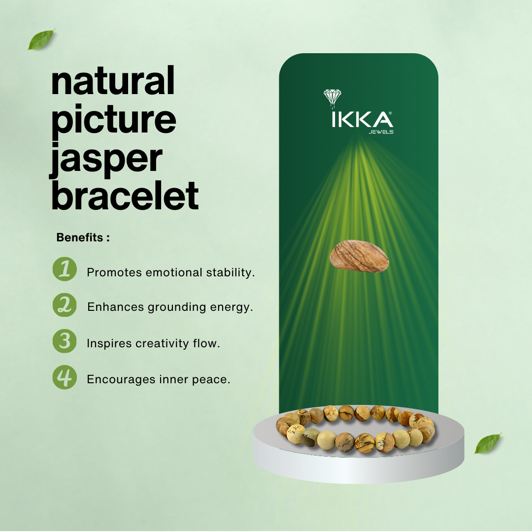 The Natural Picture Jasper Bracelet offers powerful healing properties. It helps ground and stabilize emotions, making it ideal for those seeking calmness and emotional clarity. Known for its nurturing energy, it provides comfort during times of stress or grief. Picture Jasper also enhances creativity, visualization, and personal growth, making it a perfect companion for artists, writers, and visionaries. Additionally, it fosters a deep connection with nature, encouraging mindfulness and spiritual grounding.